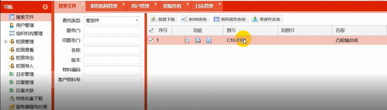 企业文件发布系统 1.企业文件发布系统 1.1 惠帆发布系统体系架构 通过发布系统将PLM中的数据向外围部门和供应厂商进行数据发布。 1.2惠帆发布系统特点 文件发布系统没有文件的中间存储,实时、动态读取PLM中数据; 文件发布系统拥有完善的权限控制:打印、下载、查询等等,拥有完善的日志管理,记录用户的行为,确保企业核心机密不外泄; 2. 可以查看图纸、BOM和零部件属性,也可进行零部件反查。零部件搜索: 零部件图纸查询: 零部件BOM查询: 零部件BOM反查: