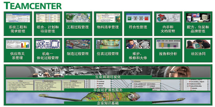 Teamcenter提供的一个协同环境,这个环境将把PLM功能扩展了,不仅连接了企业的人员也连接了合作伙伴和供应商,从而提高了总体生产力。